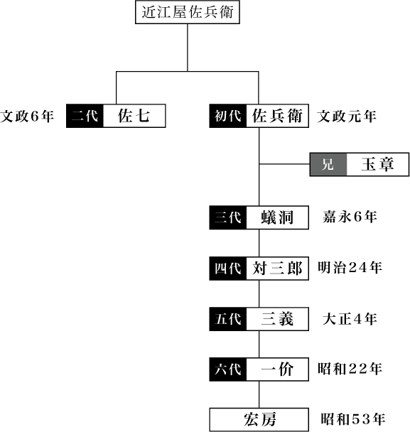 そうして、江戸時代「近江屋」の屋号と名字の「佐兵衛」より称したのが